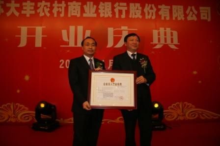 盐城市工商行政管理局副局长刘连荣向江苏大丰农村商业银行行...